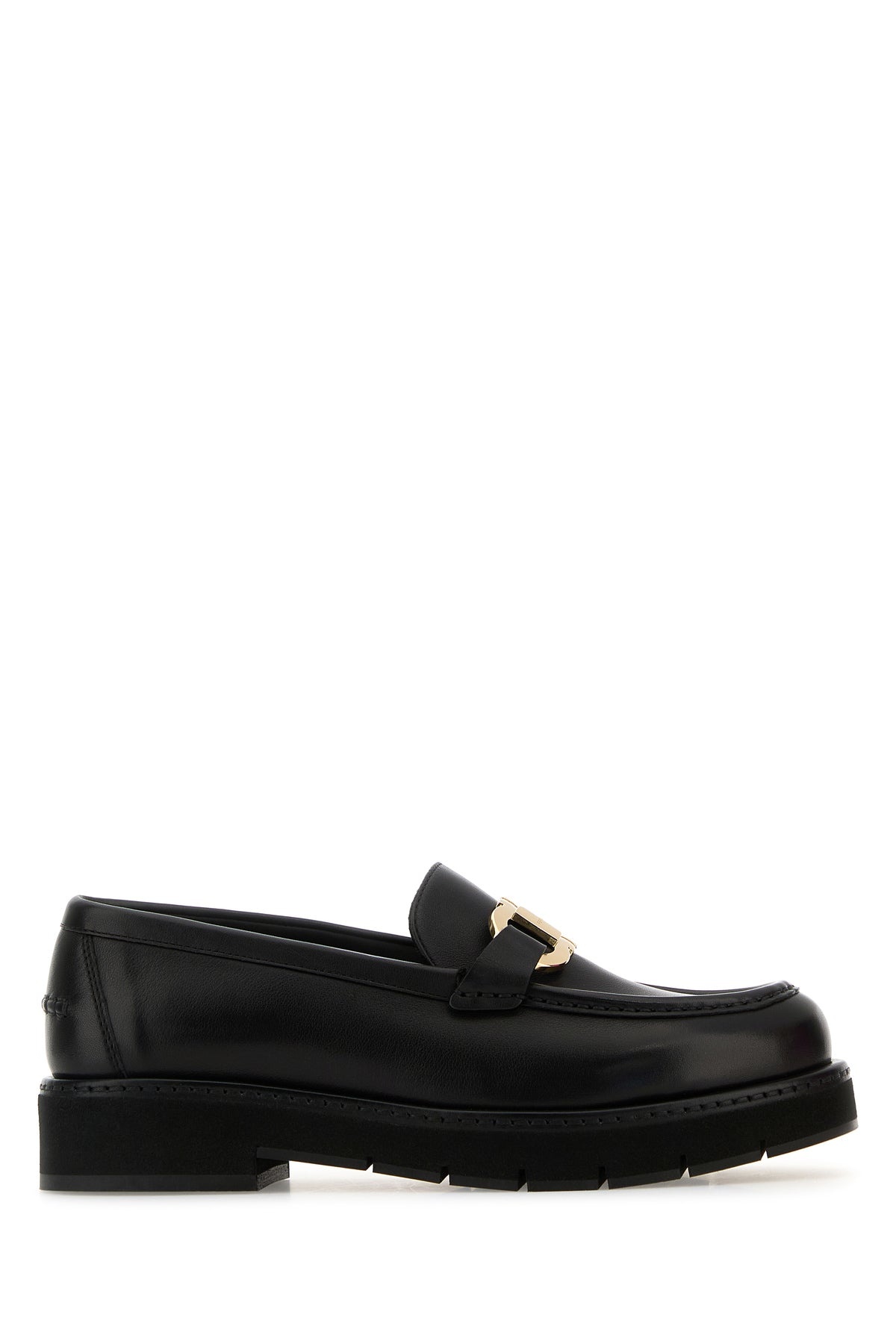 Loafers realized in pebble calf leather enriched by metal Gancini detail on the vamp. - Round toe - Printed logo on the inside DETAILS Black leather Maryan loafers Exterior: 100% Calf Interior: 100% Leather Sole: Leather Made in italy