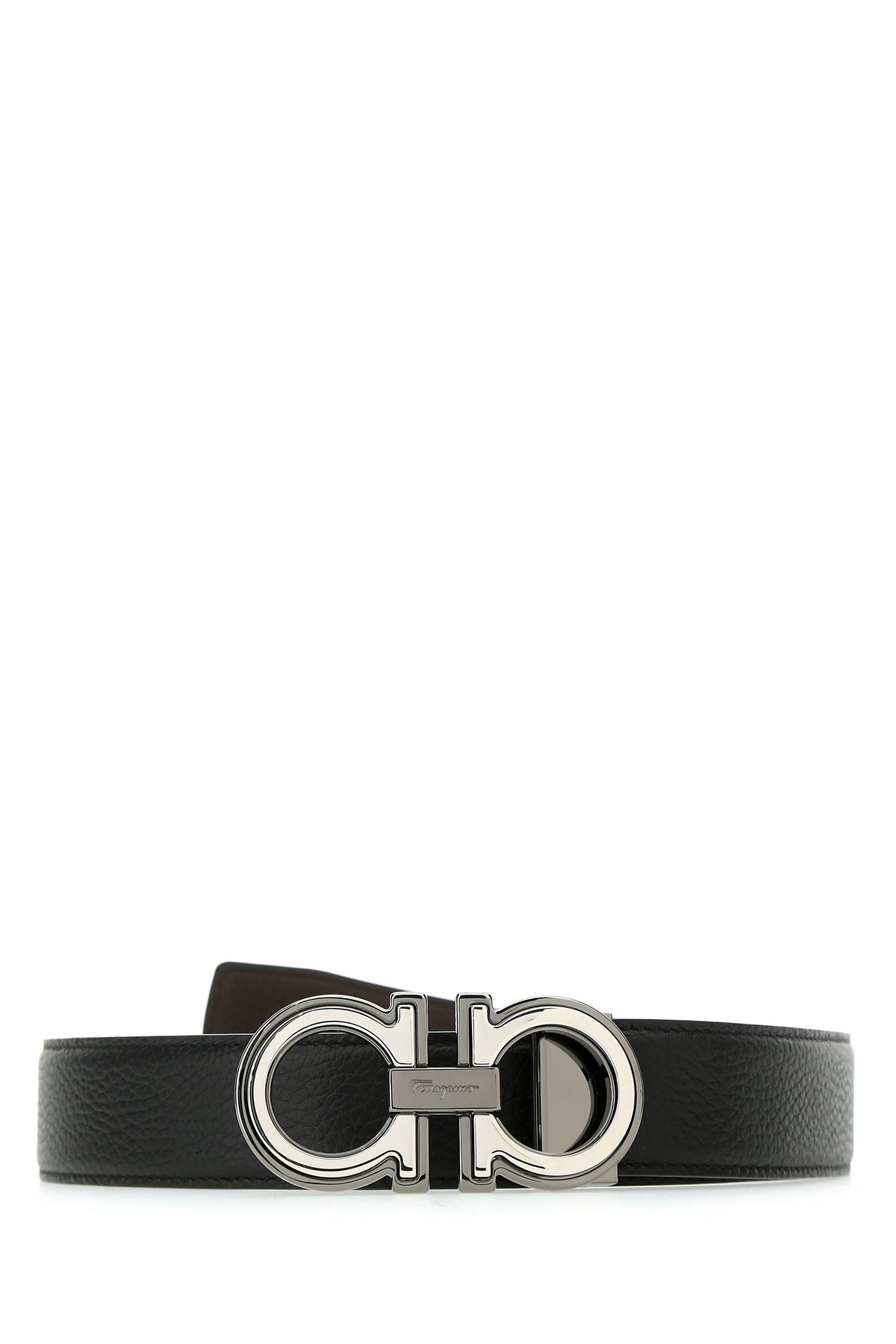 Belt realized in pebble calf leather characterized by metal Gancini buckle. - Press-stud closure DETAILS Black leather reversible belt Exterior: 100% Calf Finishing: Silver metal Made in Italy Made in italy Height: 4 cm