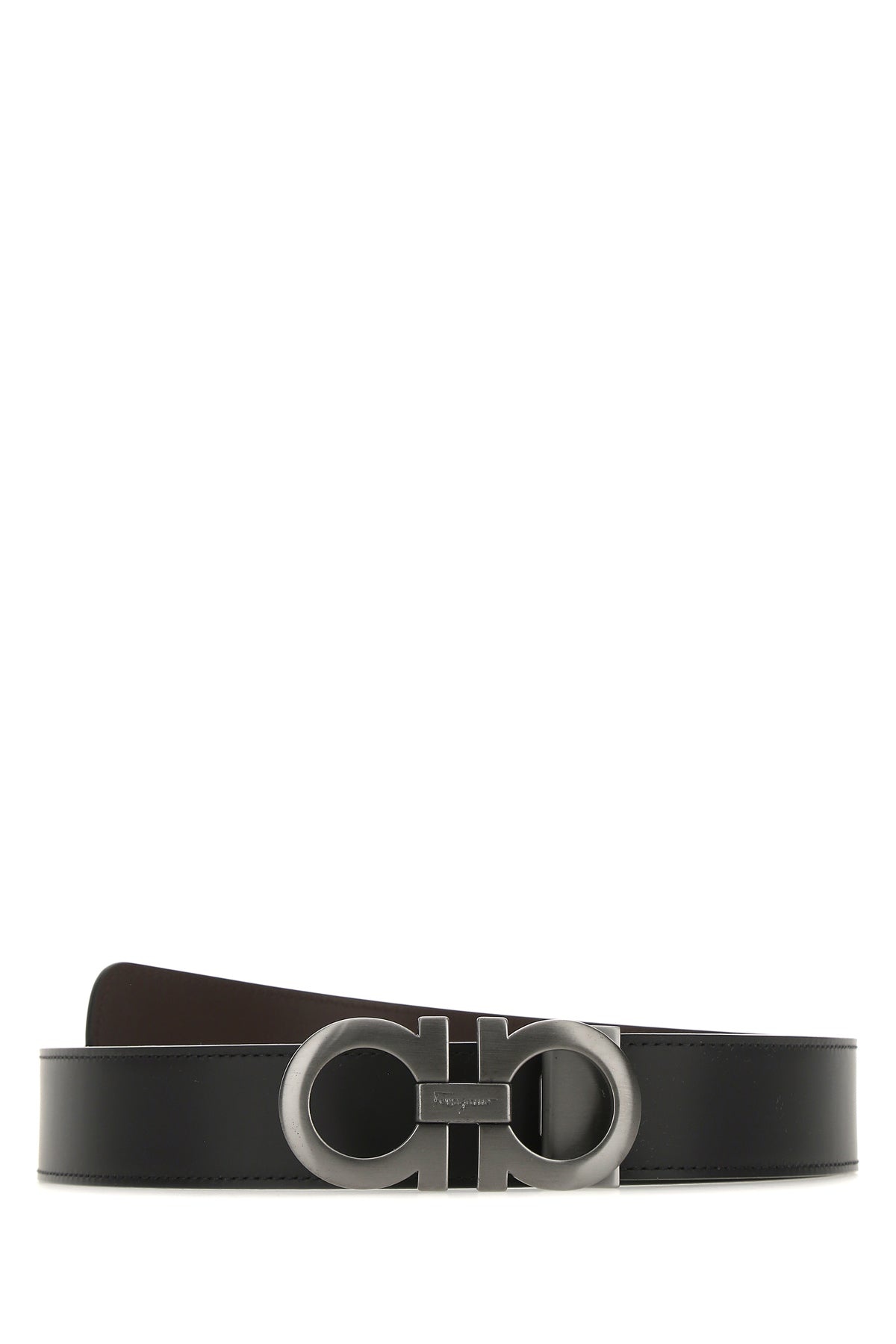 Reversible belt realized in smooth calf leather characterized by Gancini buckle. - Press-stud closure DETAILS Black leather reversible belt Exterior: 100% Calf Finishing: Gun metal Made in italy Height: 3,5 cm