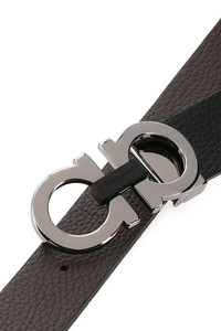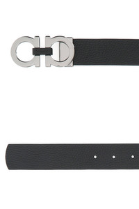 Belt realized in pebble calf leather characterized by metal Gancini motif buckle. - Press-stud closure - Contrasting interior DETAILS Black leather reversible belt Exterior: 100% Calf Finishing: Silver metal Made in italy Height: 3,5 cm