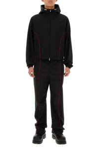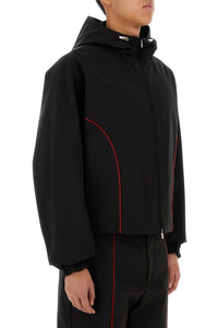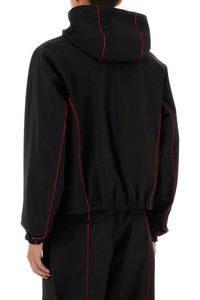 Jacket realized in polyester blend enriched by contrasting rubber trimmings. - Drawstring hood - Concealed zip closure at the front - Seam pockets - Elastic cuffs - Partially elastic hemline with inner drawstring - Unlined DETAILS Exterior: 84% Polyester 16% Cotton Made In Italy Sample size: 48