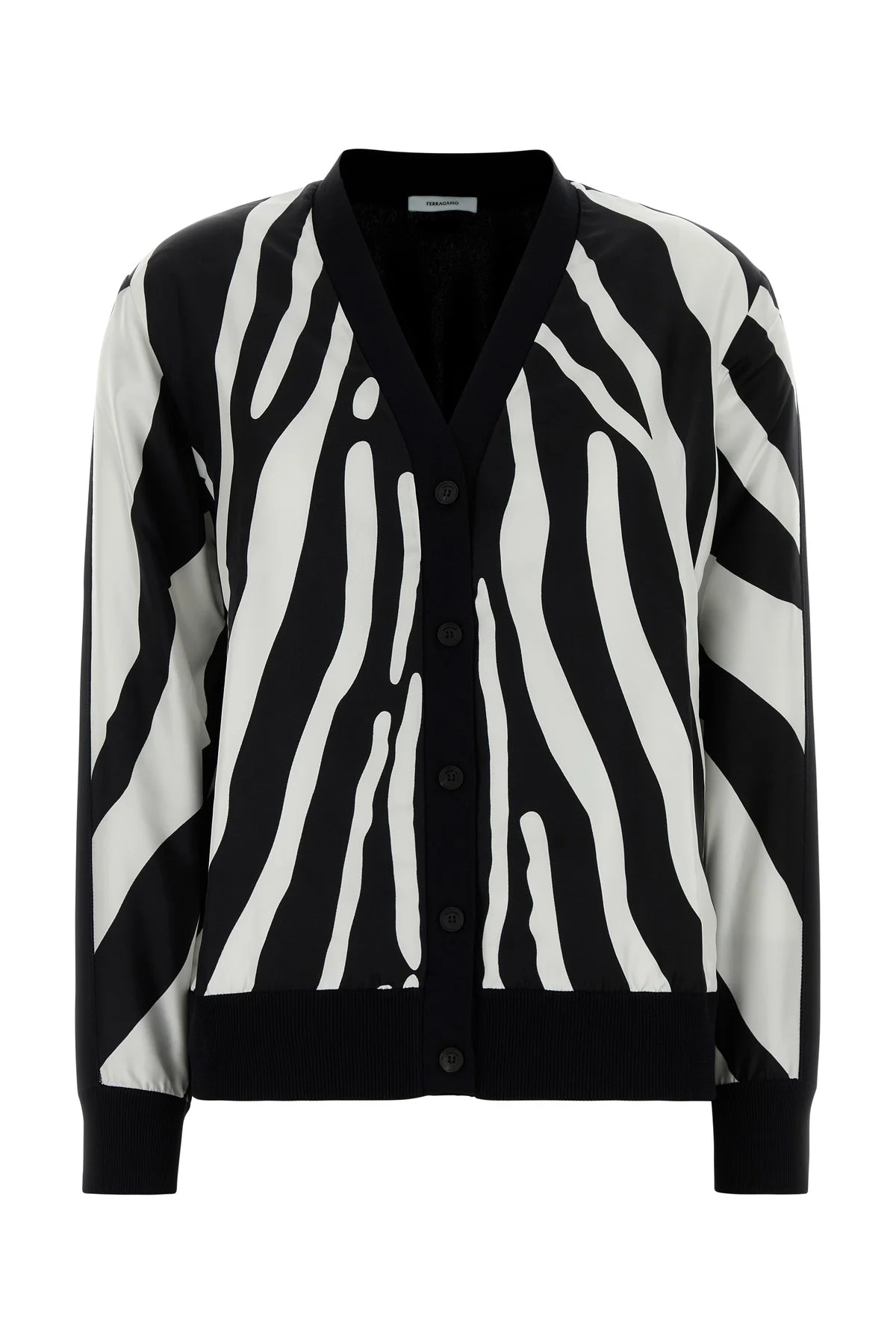 Cardigan realized in viscose with silk insert at the front characterized by animal print at the front. - V neckline - Buttons closure - Ribbed cuffs and hemline DETAILS Black viscose cardigan Exterior: 100% Viscose 100% Silk Made in italy Sample size: S