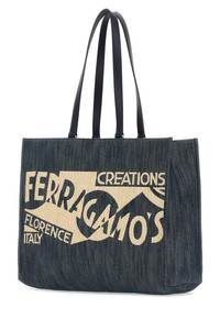 Shopping bag realized in denim characterized by contrasting logoed embroidery at the front. - Four tonal leather handles - Lined interior with a zip pocket and two patch pockets DETAILS Exterior: 100% Fabric Lining: 100% Fabric Finishing: Golden metal Made In Italy Width: 44,5 cm Height: 33 cm Depth: 15,5 cm Handle height 1: 15 cm Handle height 2: 30 cm