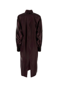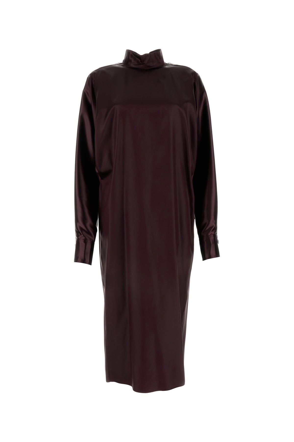 Midi dress realized in satin characterized by batwing sleeves. - High neck - Concealed hooks closure at the back - Buttoned cuffs - Central slit at the back - Unlined DETAILS Burgundy satin dress Exterior: 64% Acetate 36% Viscose Made in italy Model is 174 cm and is wearing a size M