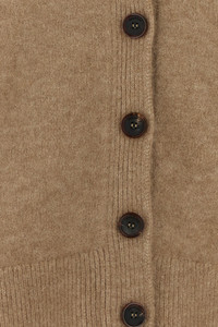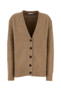 Oversize cardigan realized in stretch alpaca blend enriched by metal logoed detail at the back. - V neckline - Buttons closure - Ribbed cuffs and hemline DETAILS Camel stretch alpaca blend oversize cardigan Exterior: 42% Alpaca 27% Silk 19% Cashmere 9% Nylon 3% Elastane Made in italy Sample size: XS