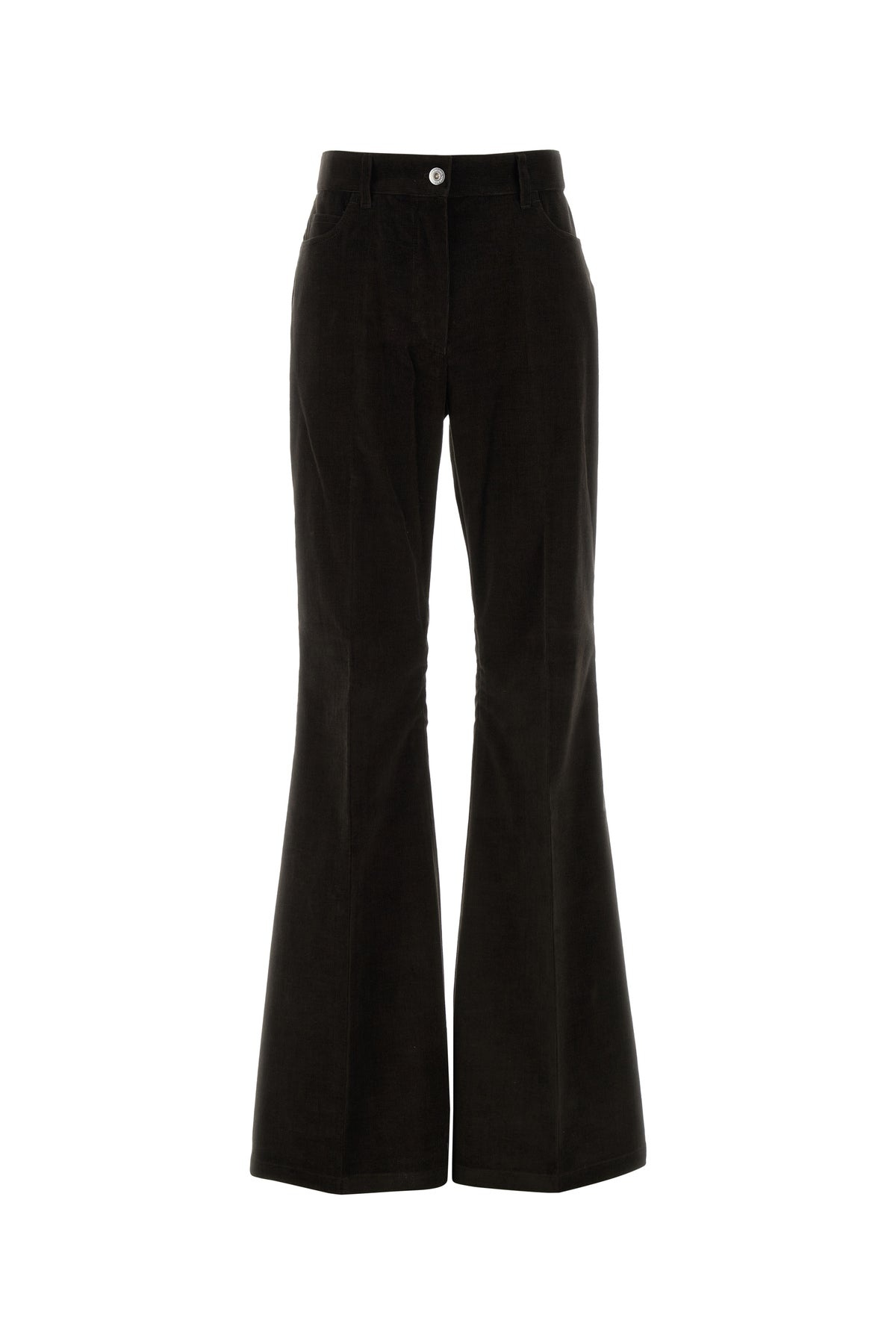 Flared pant realized in stretch cotton corduroy characterized by central ironed pleats. - Belt loops at the waist - Concealed zip and a single visible button closure - Five classic pockets DETAILS Dark brown corduroy flared pant Exterior: 98% Cotton 2% Elastane Made in italy Model is 170 cm and is wearing a size 38