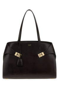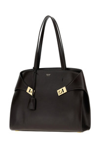 Shopping bag realized in pebble calf leather characterized by laminated printed logo at the front. - Two leather flat handles - Adjustable detachable tonal leather shoulder strap - Zip closure - Straps with Gancini metal detail - Lined interior with two zip pockets - Protective metal feet at the base DETAILS Dark brown Hug shopping bag Exterior: 100% Calf Lining: 100% Fabric Finishing: Golden metal Made in italy Width: 44 cm Height: 31 cm Depth: 13 cm Handle height: 27 cm