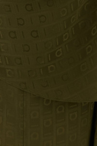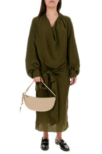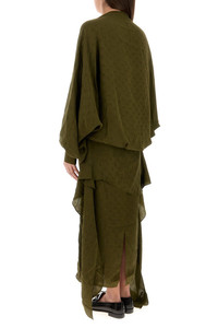 Long-cut dress realized in pure silk characterized by tonal Gancini embroidery on the entire surface. - Hooded neckline - Batwing sleeves - Buttoned cuffs - Central slit at the back - Unlined DETAILS Olive green silk dress Exterior: 100% Silk Made in italy Model is 170 cm and is wearing a size 38