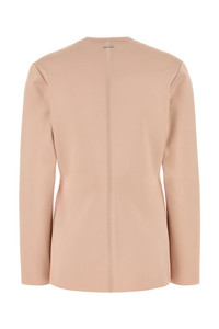 Cardigan realized in stretch viscose blend enriched by logoed metal plate a the back. - V neckline - Button closure DETAILS Pink stretch viscose blend cardigan Exterior: 90% Viscose 7% Nylon 3% Elastane Made in italy Sample size: M