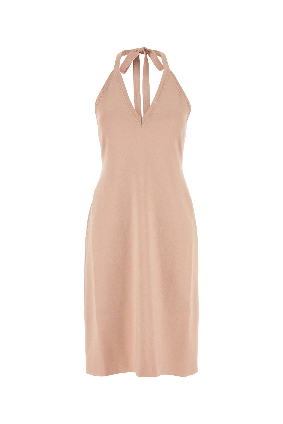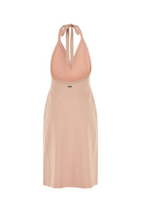 Dress realized in stretch viscose blend characterized by laces to tie at the back. - V neckline - Flared hemline - Unlined DETAILS Pink stretch viscose blend dress Exterior: 90% Viscose 7% Nylon 3% Elastane Made in italy Sample size: M
