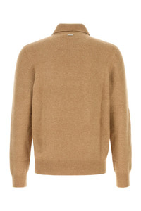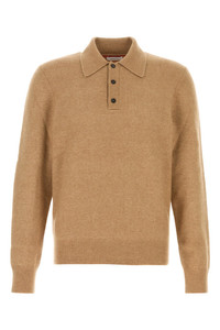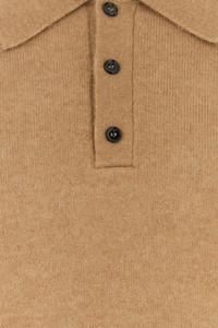Long-sleeves polo shirt realized in stretch camel blend enriched by logoed metal plate at the back. - Collar - Partial buttons closure - Ribbed cuffs and hemline DETAILS Stretch camel blend polo shirt Exterior: 71% Camel 19% Silk 9% Nylon 1% Elastane Made in italy Sample size: M