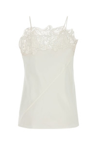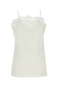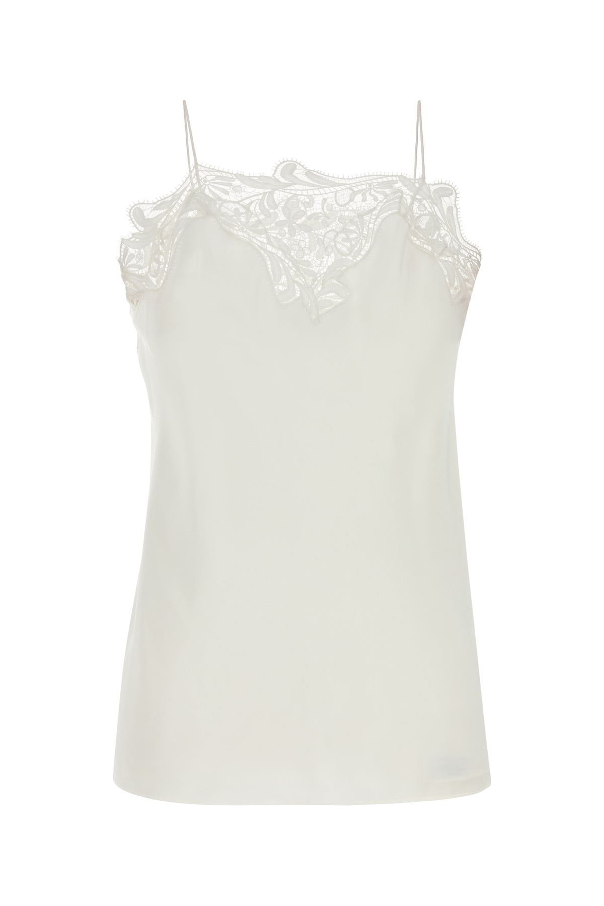 Top realized in pure silk crepe enriched by tonal lace insert at the top. - Squared neckline - Thin shoulder straps - Lined DETAILS White crepe top Exterior: 100% Silk Lining: 100% Silk Made in italy Sample size: 38