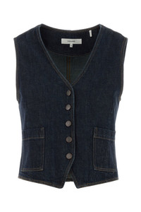 Vest realized in denim. - Round neckline - Buttons closure - Two patch pockets at the front - Unlined DETAILS Denim vest Exterior: 100% Cotton Made in turkiye Sample size: XS