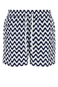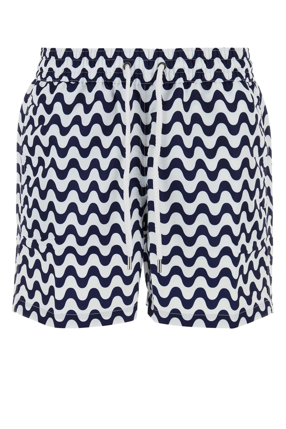 Swimming shorts realized in polyester characterized by Copacabana print on the entire surface. - Elastic waist with drawstring - seam pockets and a slit pocket at the back - Partially mesh lined DETAILS Printed polyester Sport swimming shorts Exterior: 100% Polyester Lining: 100% Cotton Made in eu Sample size: M