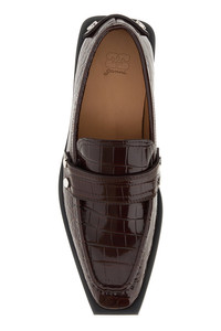 Loafers realized in patent crocodile-motif embossed synthetic leather enriched by metal studs on the vamp and on the heel. - Squared toe - Embossed logo on the inside DETAILS Brown synthetic leather loafers Exterior: 100% Synthetic leather Interior: 100% Synthetic leather Sole: Rubber Made in portugal