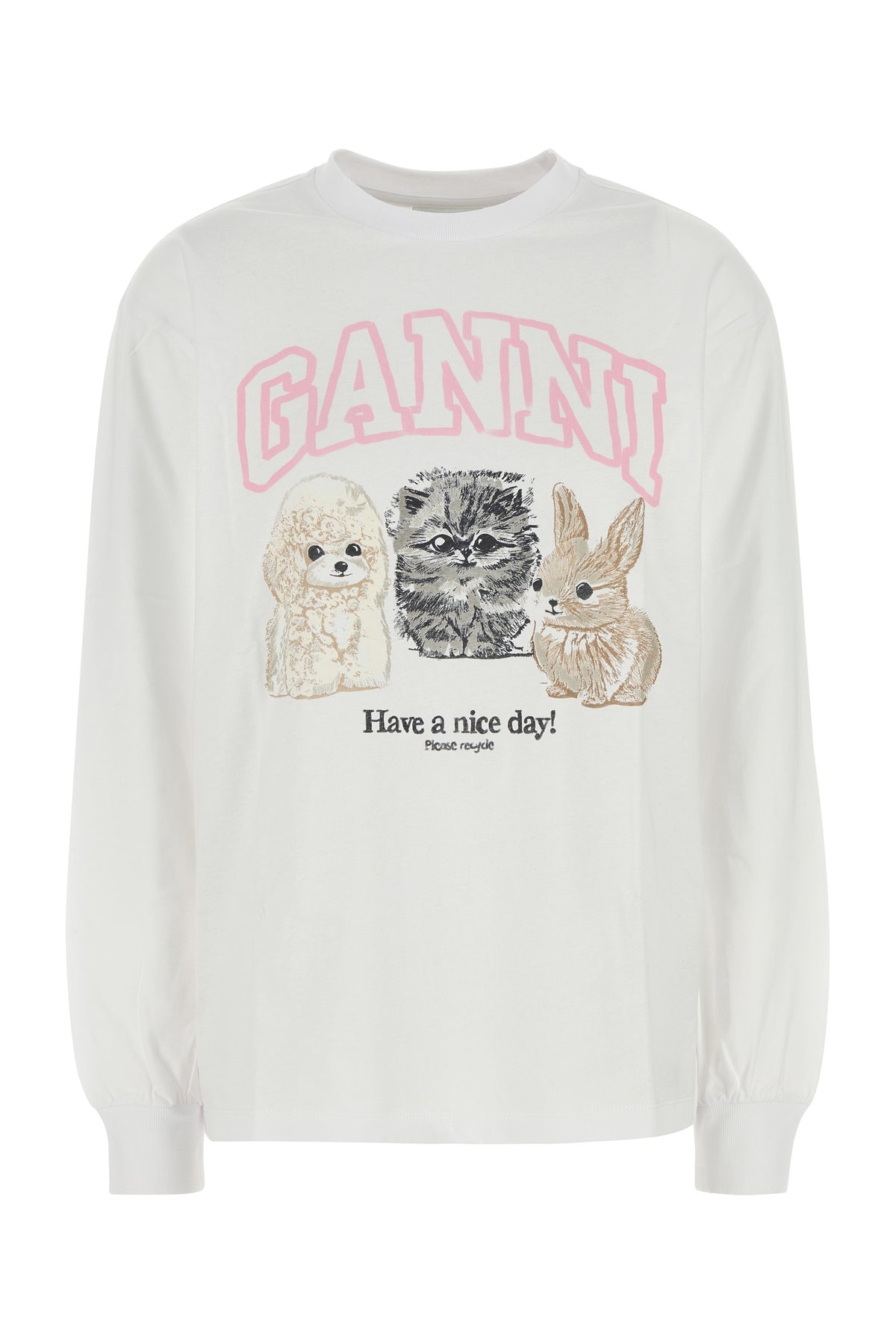 Oversize long-sleeves t-shirt realized in pure cotton characterized by contrasting logoed print at the front. - Ribbed crew-neck and cuffs DETAILS White cotton oversize t-shirt Exterior: 50% Organic cotton 50% Recycled cotton Made in repubblica ceca Sample size: XS