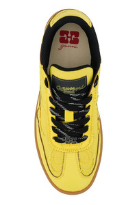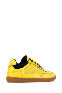 Sneakers realized in patent synthetic leather and fabric characterized by embossed logo on the side. - Lace up closure with metal GANNI detail - Logoed label on the padded tongue - Padded ankle - Printed logo on the inside DETAILS Yellow synthetic leather and fabric sneakers Exterior: 100% Synthetic leather 100% Fabric Interior: 100% Fabric Sole: Rubber Made in portugal