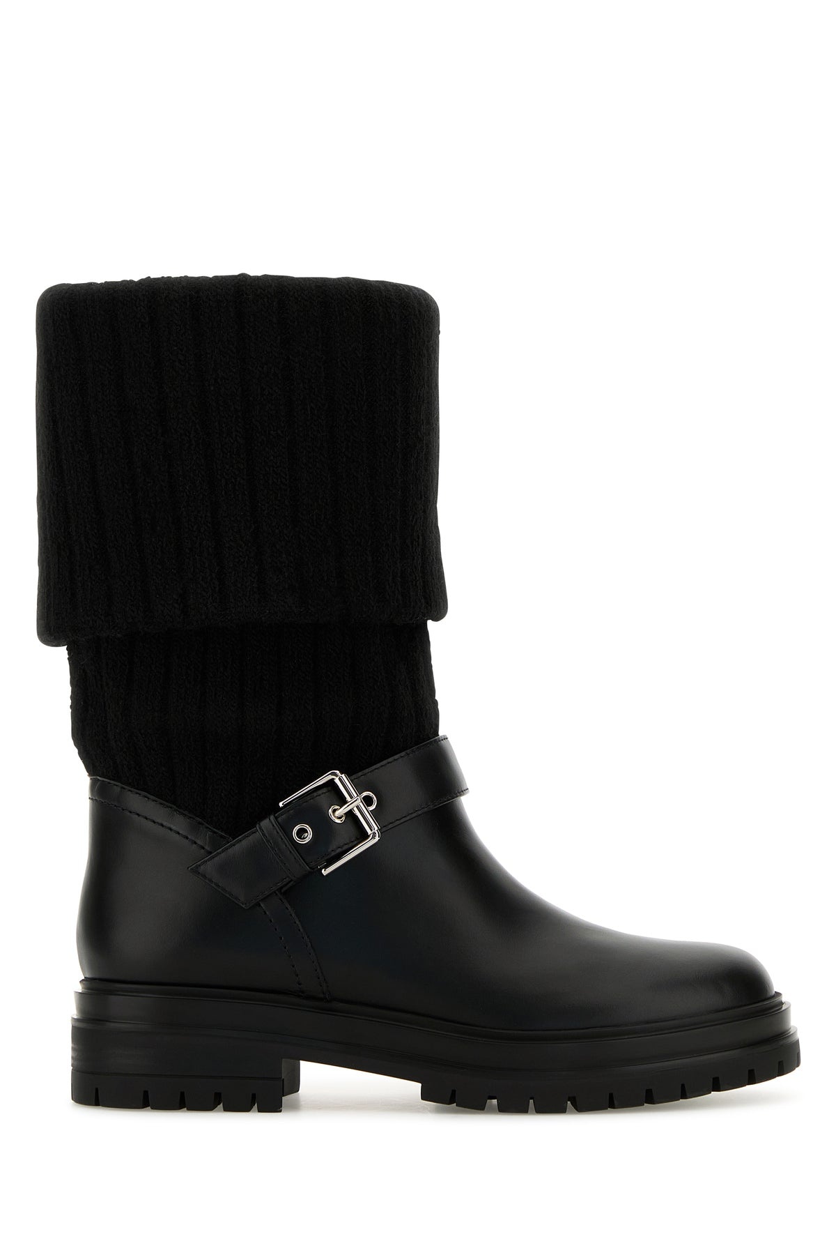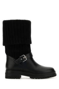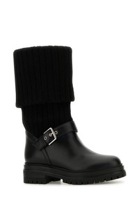 Ankle boots realized in smooth leather and ribbed fabric enriched by adjustable strap with metal buckle on the side. - Round toe - Printed logo on the inside DETAILS Black leather and fabric Thurso boots Exteiror: 100% Leather 100% Fabric Interior: 100% Leather 100% Fabric Sole: Rubber Made in italy