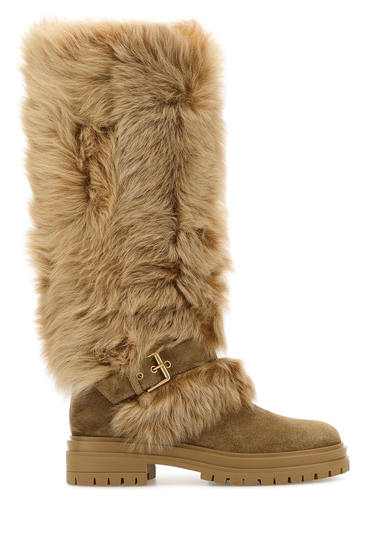 Ankle boots realized in suede and fur enriched by adjustable strap with metal buckle on the side. - Round toe - Pull-tab - Printed logo on the inside DETAILS Camel suede and fur Maverick boots Exteiror: 100% Suede 100% Fur Interior: 100% Leather Sole: Rubber Made in italy