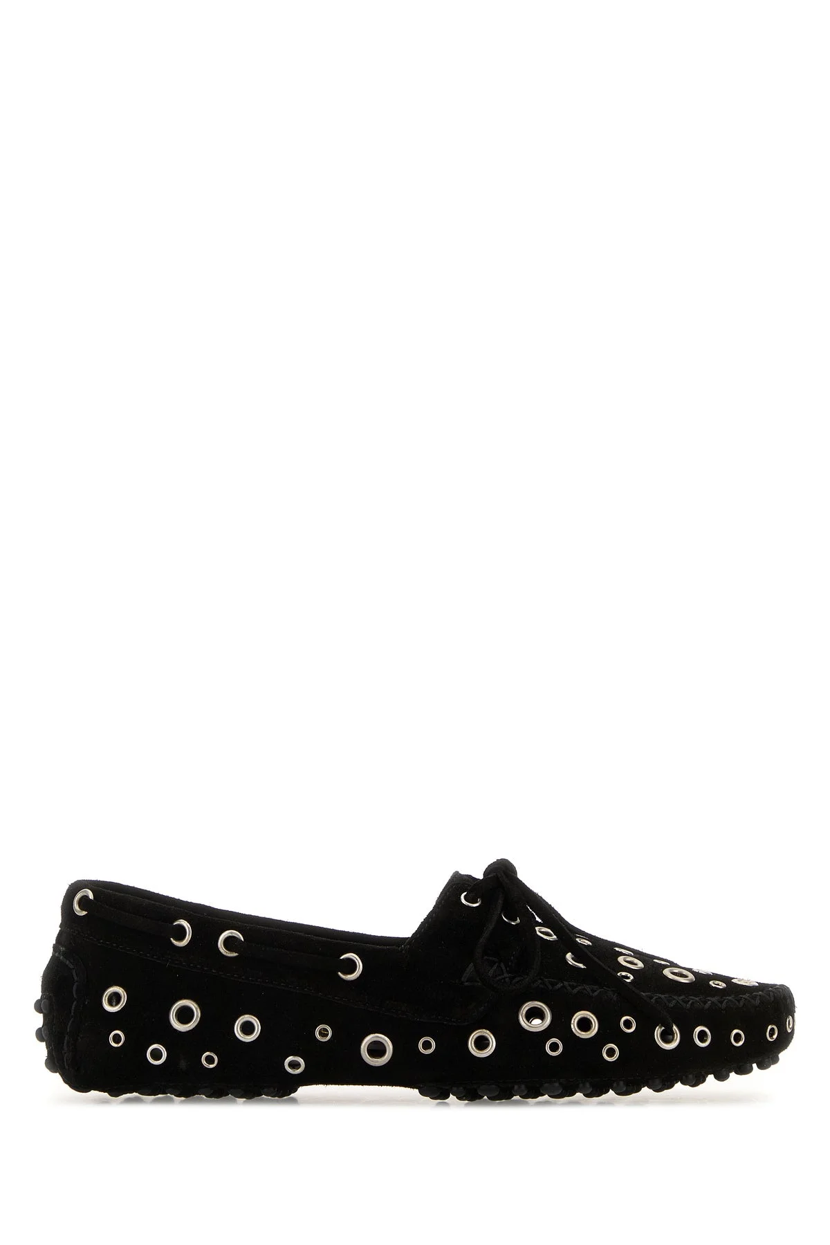 Loafers realized in suede enriched by metal studs on the entire surface. - Round toe - Decorative lacing - Embossed logo on the inside DETAILS Black suede Car loafers Exterior: 100% Suede Interior: 100% Suede Sole: Rubber Made in