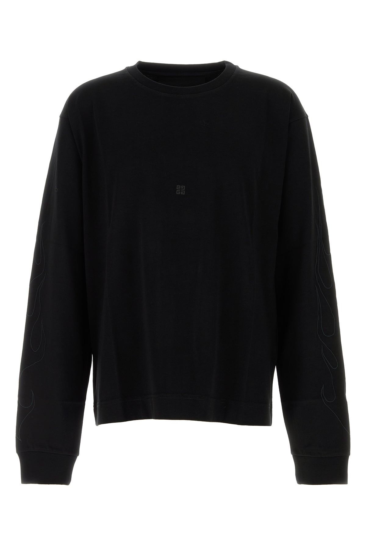 Long-sleeves t-shirt realized in pure cotton characterized by tonal 4G print on the chest, peculiar embroidery on the sleeves and peculiar print at the back. - Ribbed crew-neck DETAILS Black cotton t-shirt Exterior: 100% Cotton Made in portugal Sample size: M