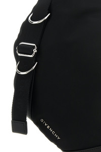 Crossbody bag realized in nylon blend enriched by metal lettering logo and adjustable straps at the front. - Adjustable tonal fabric shoulder strap - Zip closure - Lined interior with a patch pocket DETAILS Exterior: 90% Nylon 10% Acrylic Lining: 100% Nylon Finishing: Silver metal Made In Italy Width: 35 cm Height: 24 cm Depth: 4 cm Min shoulder strap length: 45 cm Max shoulder strap length: 85 cm