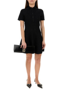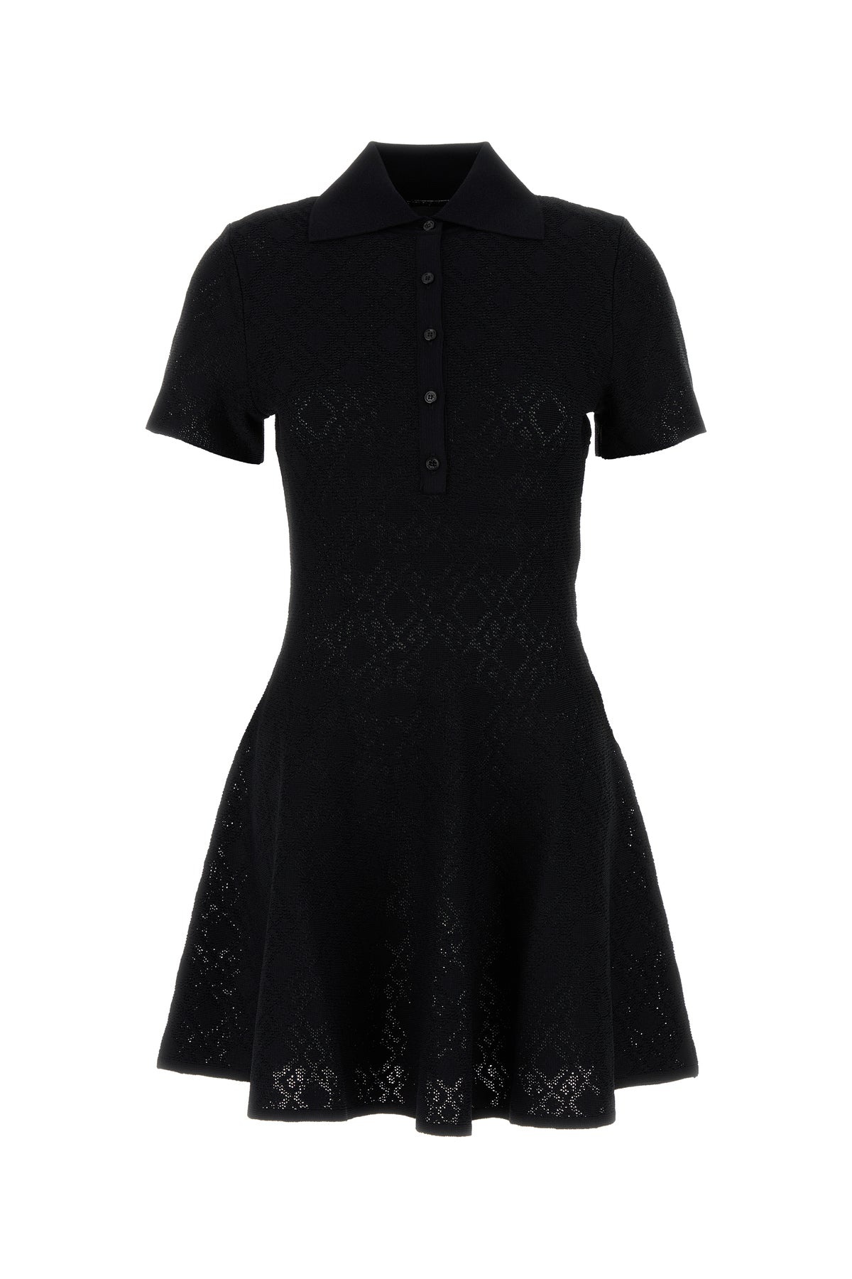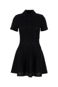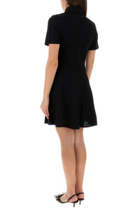 Dress realized in viscose blend characterized by peculiar embroidery on the entire surface. - Collar - Partial buttons closure - Flared hemline - Unlined DETAILS Black viscose blend polo dress Exterior: 91% Viscose 6% Nylon 3% Polyester Made in italy Model is 170 cm and is wearing a size XS