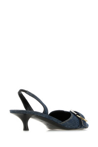 Slingback realized in denim enriched by decorative strap with metal buckles at the front. - Partial elastic ankle strap - Pointed toe - Stiletto heel - Embossed logo on the inside DETAILS Denim Voyou pumps Exterior: 100% Cotton Interior: 100% Leather Sole: Leather Made in italy Heel height: 4,5 cm