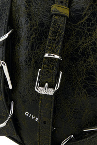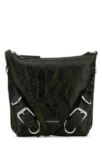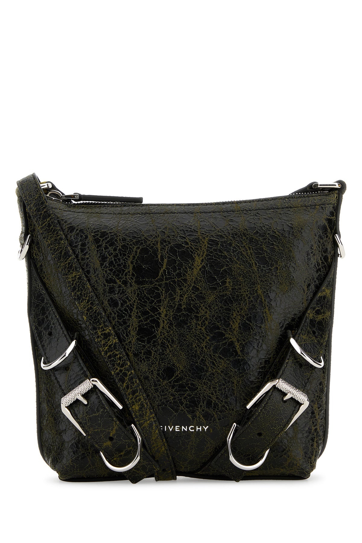 Crossbody bag realized in craquele-effect calf leather characterized by printed laminated logo at the front enriched by decorative leather straps with metal details at the front. - Adjustable leather shoulder strap - Zip closure - Lined interior with a slit pocket DETAILS Two-tone leather Voyou crossbody bag Exterior: 100% Calf Lining: 100% Fabric Finishing: SIlver metal Made in italy Width: 18 cm Height: 21,5 cm Depth: 4,5 cm Min shoulder strap length: 30 cm Max shoulder strap length: 50 cm