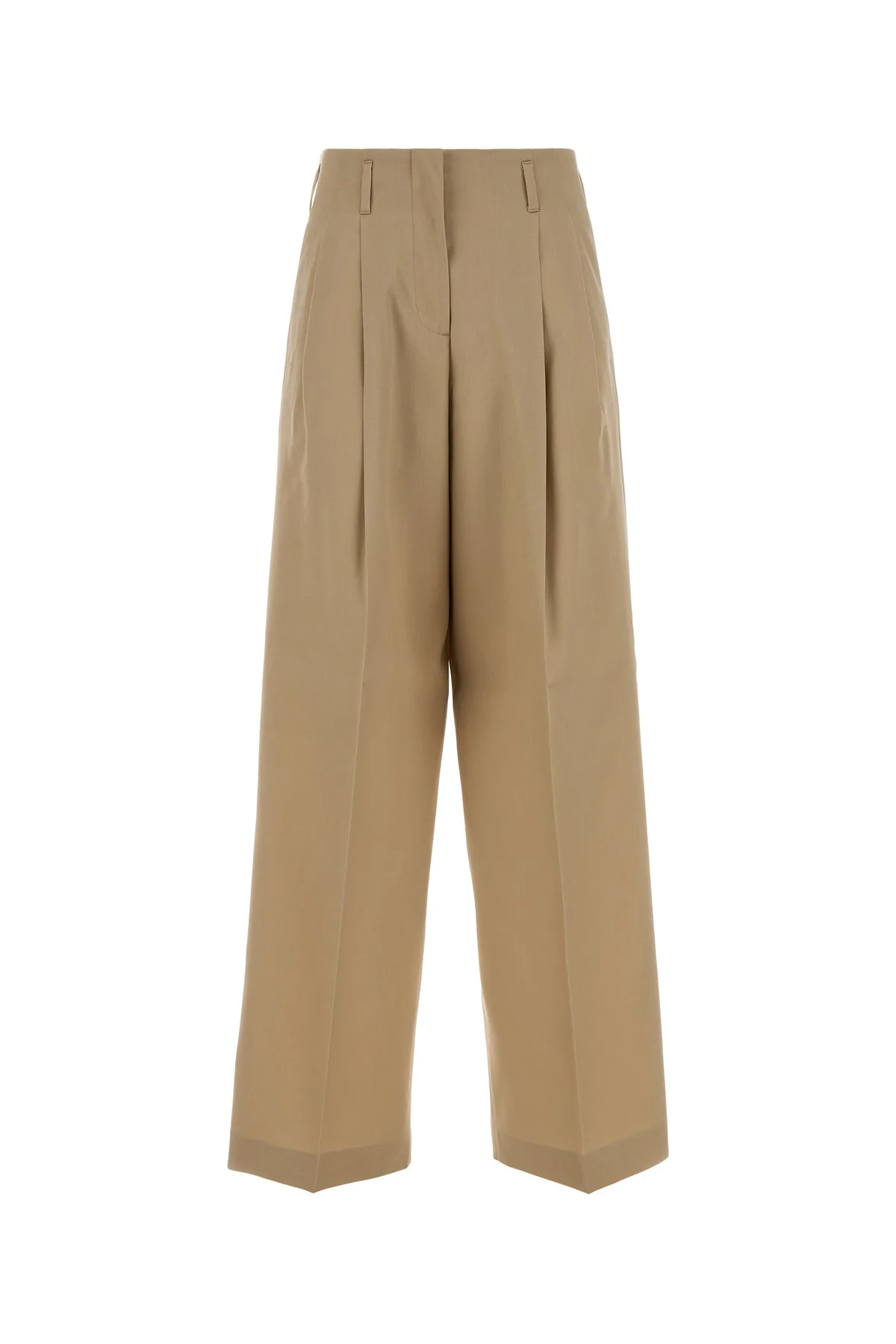 Wide-leg pant realized in pure virgin wool enriched by metal Half Star details at the back. - Belt loops at the waist - Concealed zip and hook closure - Seam pockets and two flap pockets at the back - Inverted pleats DETAILS Beige wool wide-leg Flavia pant Exterior: 100% Virgin wool Made in italy Sample size: 38