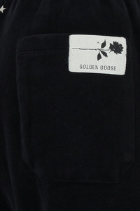 Joggers realized in velvet enriched by iconic Star metal details and logoed label at the back. - Elastic waist with drawstring - Slant pockets and a patch pocket at the back DETAILS Black velvet joggers Exterior: 79% Cotton 21% Polyester Made in italy Sample size: S