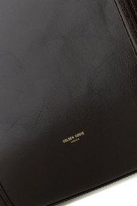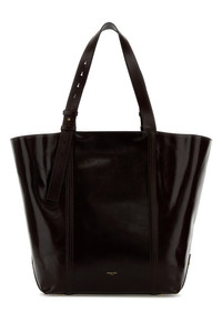 Shopping bag realized in polished-finish leather characterized by laminated printed logo at the front. - Adjustable tonal leather flat handles - Hook closure - Split-leather interior with a detachable tonal leather pouch - Metal protective feet at the base DETAILS Dark brown leather 24.7 shopping bag Exterior: 100% Leather Finishing: Platinum Made in italy Width: 34 cm Height: 39 cm Depth: 18 cm Handle height: 25 cm