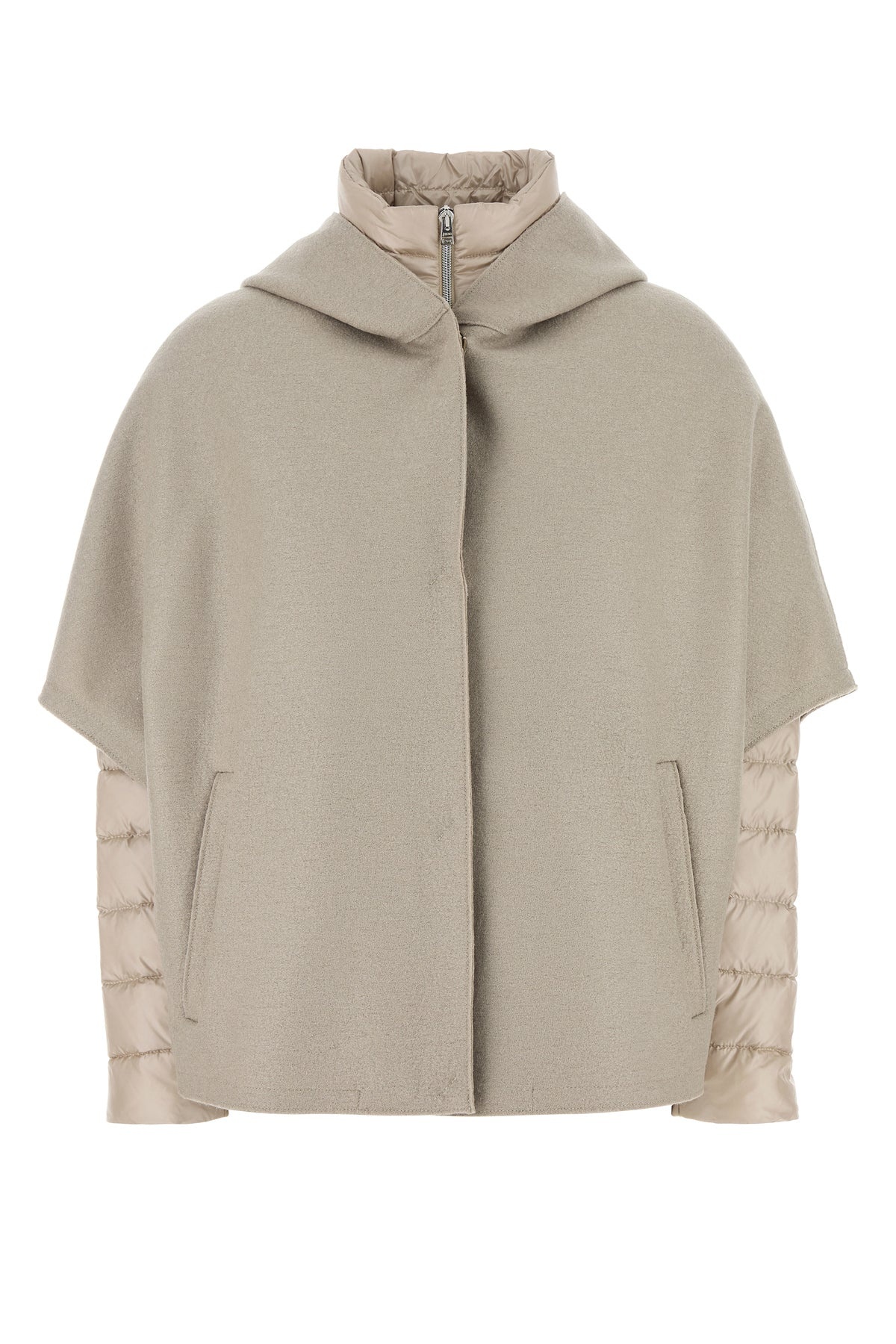 Layered down jacket realized in quilted nylon characterized by detachable fabric insert. - Hood - High collar - Buttons and zip closure - Two slit pockets at the front - Drawstring on the hemline - Lined DETAILS Beige nylon down jacket Exterior: 100% Nylon Lining: 100% Nylon Padding: 90% Down 10% Feather Made in italy Sample size: 40