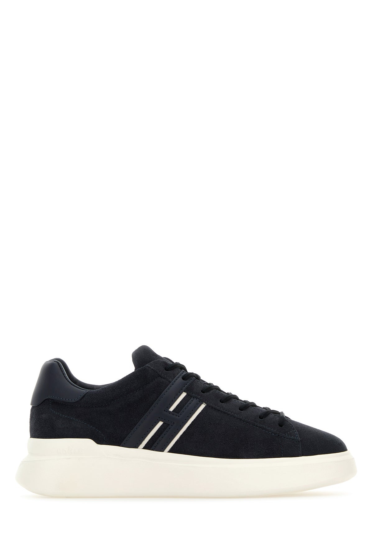 Sneakers realized in suede with smooth leather heel characterized by logo in relief on the hemline enriched by tonal H patch on the side. - Lace-up closure - Embossed logo on the padded tongue - Padded ankle - Printed logo on the inside - Moulded sole DETAILS Navy blue suede H580 sneakers Exterior: 100% Suede Interior: 100% Fabric Sole: Rubber Made in italy