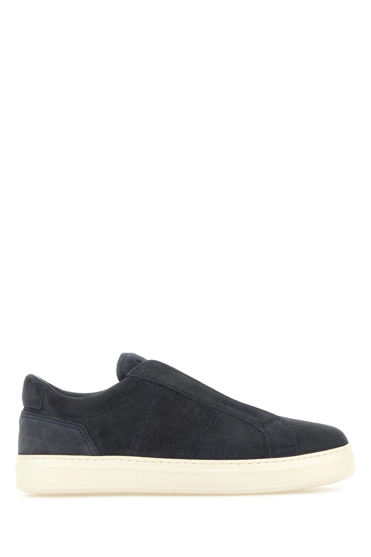 Slip ons realized in suede characterized by logo in relief at the back. - Round toe - Embossed logo on the padded tongue - Padded ankle - Printed logo on the inside DETAILS Navy blue suede H668 slip ons Exterior: 100% Suede Interior: 100% Fabric Sole: Rubber Made in italy