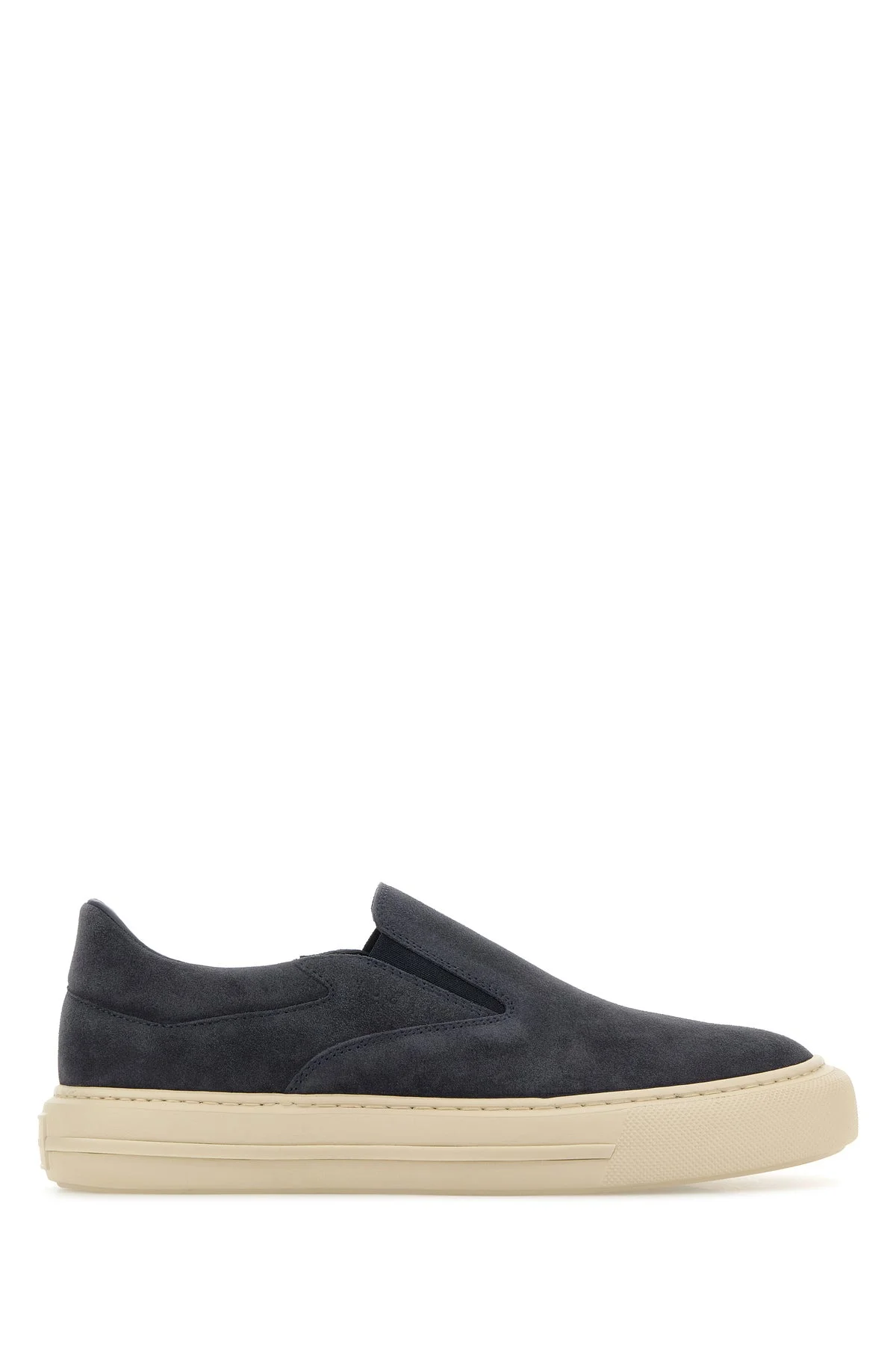 Slip ons realized in suede enriched by logoed patch at the back. - Round toe - Padded ankle - Printed logo on the inside DETAILS Navy blue suede H691 slip ons Exterior: 100% Suede Interior: 100% Fabric Sole: Rubber Made in italy