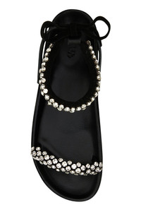 Sandals realized in bovine leather enriched by rhinestones at the front and on the adjustable ankle strap. - Round toe - Embossed logo on the inside DETAILS Exterior: 100% Bovine leather 100% Rhinestones Interior: 100% Leather Sole: Leather Made In Portugal