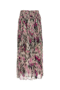 Skirt realized in pure silk characterized by peculiar print on the entire surface. - Elastic waist - Central slit at the front - Unlined DETAILS Printed silk Rolande skirt Exterior: 100% Silk Made in india Sample size: 38