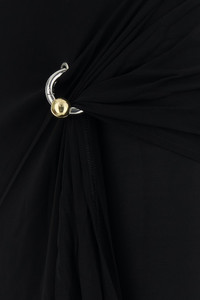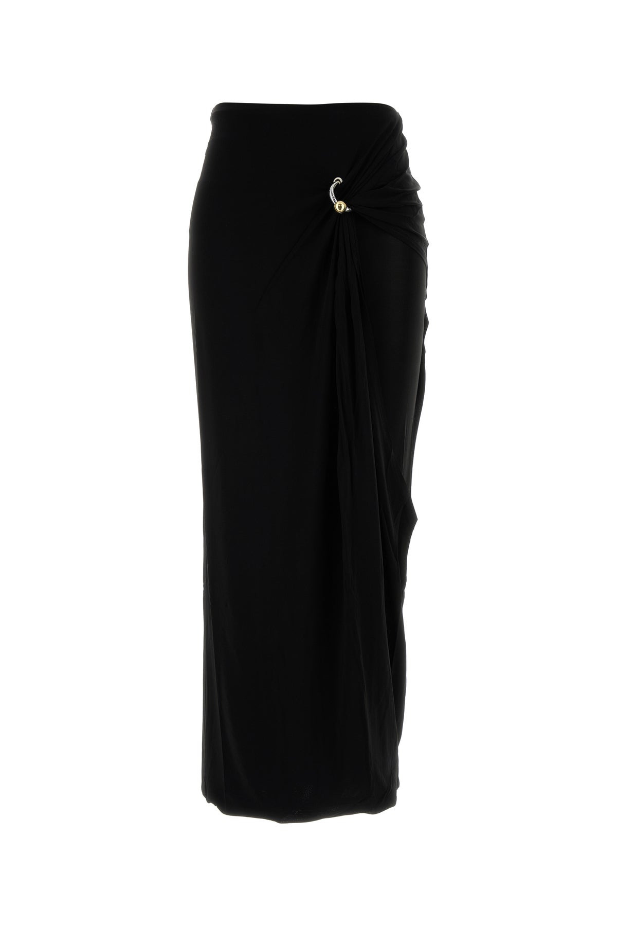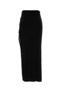 Fitted skirt realized in stretch rayon enriched by logoed metal detail at the front. - Elastic waist - Lined DETAILS Black stretch rayon skirt Exterior: 94% Rayon 6% Elastane Lining: 100% Fabric Made in Sample size: XS