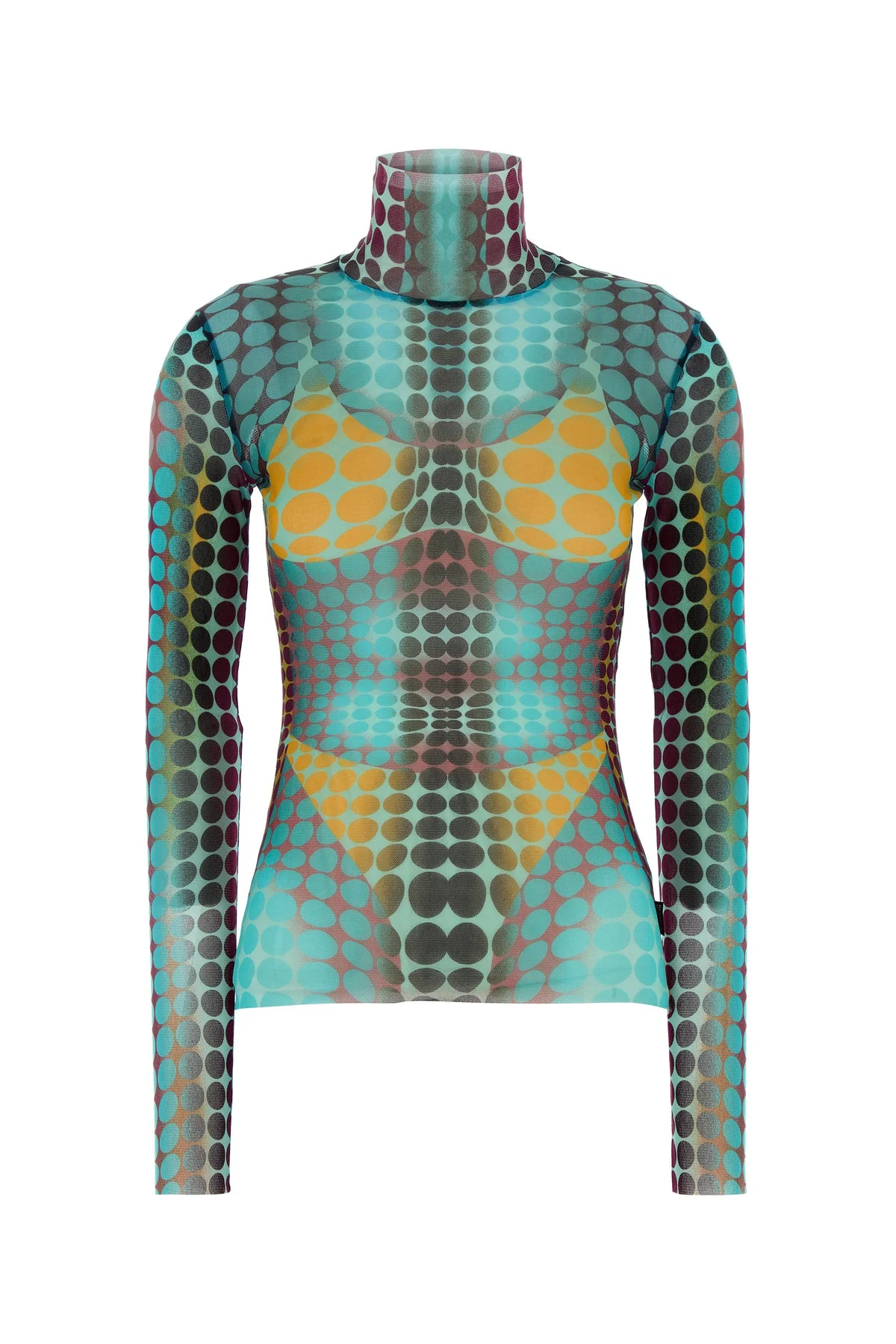 Long-sleeve top realized in mesh characterized by Dots print on the entire surface enriched by logoed label on the side. - Mock-turtleneck - Semi-transparent DETAILS Printed mesh top Exterior: 100% Nylon Made in italy Sample size: XS