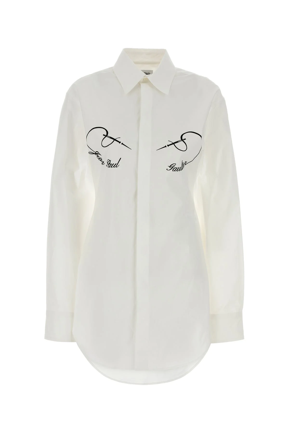 Shirt realized in stretch cotton poplin characterized by contrasting embroidered logo on the chest. - Italian collar - Buttons closure - Angle cuffs with button - Rear yoke DETAILS White stretch poplin shirt Exterior: 97% Cotton 3% Elastane Made in morocco Sample size: 38