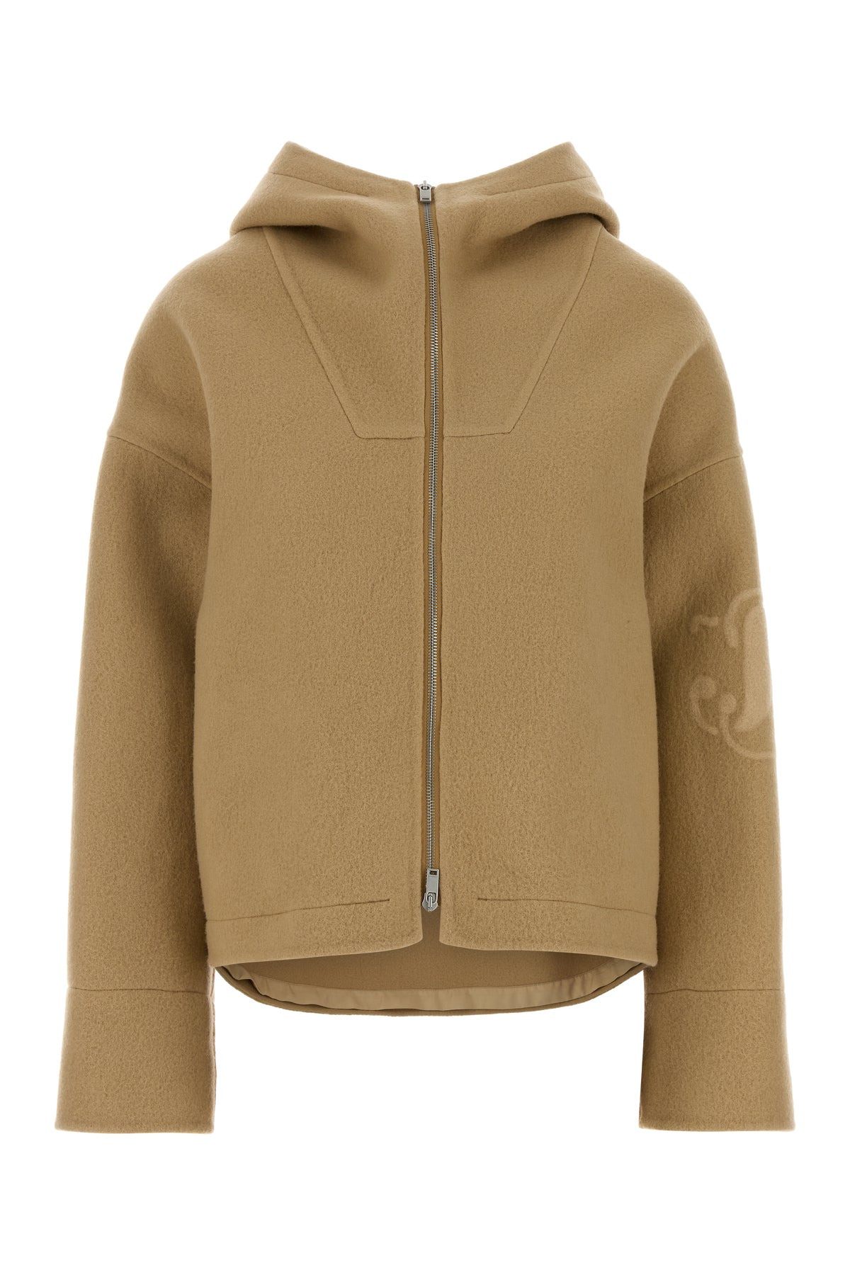 Jacket realized in pure virgin wool felt characterized by logoed embroidery on the sleeve. - Hood - Zip closure - Seam pockets - Drawstring on the hemline - Unlined DETAILS Beige felt jacket Exterior: 100% Virgin wool Made in italy Sample size: XS