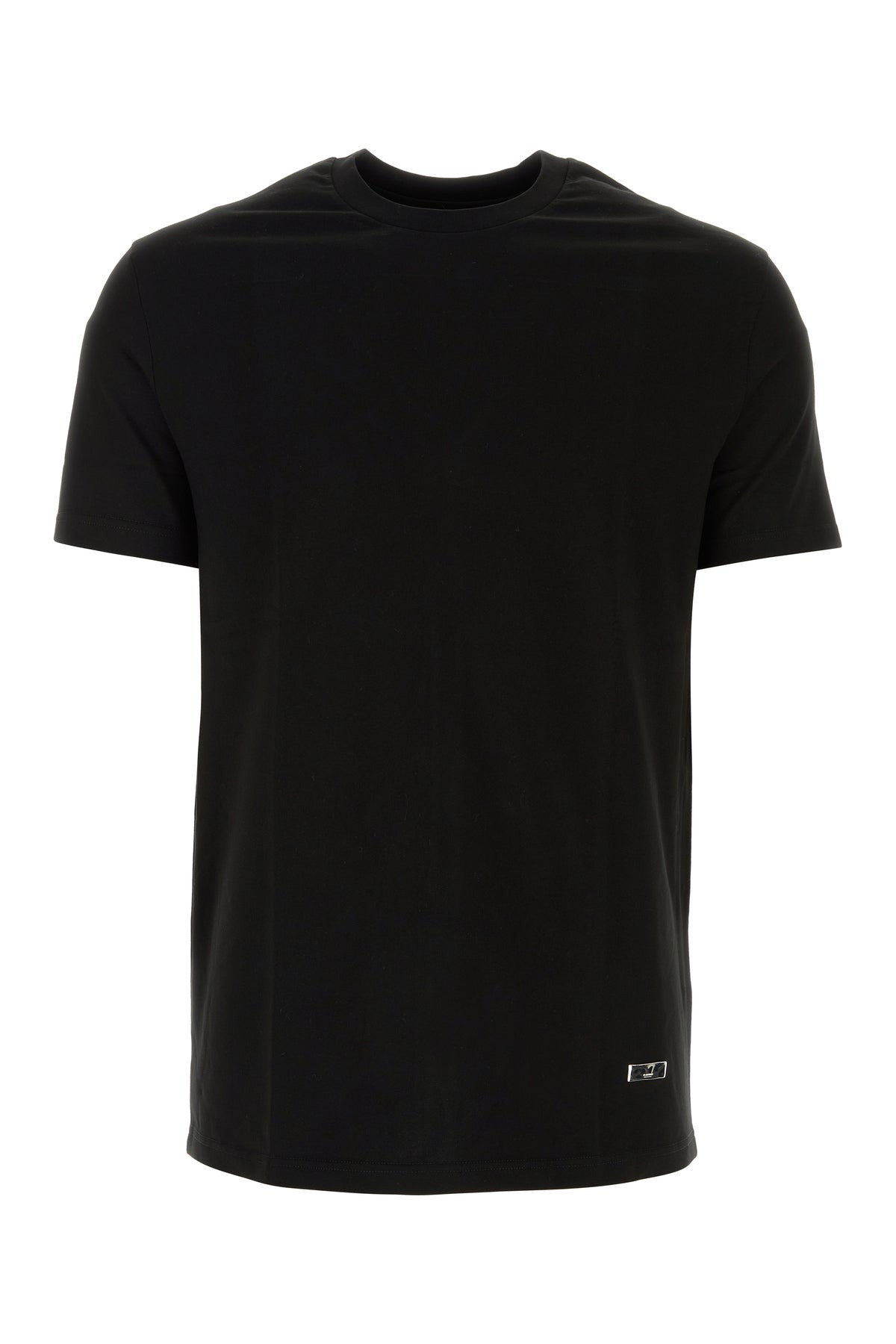 T-shirt realized in pure cotton enriched by metal logoed plate on the hemline. - Ribbed crew-neck DETAILS Exterior: 100% Cotton Made In Italy Sample size: M