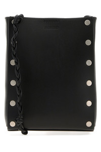 Crossbody bag realized in smooth calf leather characterized by embossed logo at the front enriched by metal studs on the trimmings. - Woven leather shoulder bag - Magnetic button closure - Lined interior with a patch pocket DETAILS Black leather Tangle crossbody bag Exterior: 100% Calf Lining: 100% Leather Finishing: Silver metal Made in italy Width: 14 cm Height: 19 cm Depth: 5 cm Shoulder strap length: 56 cm