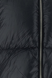 Down jacket realized in quilted nylon characterized by high collar. - Zip closure - Two zip pockets at the front - Adjustable cuff by buttons - Drawstring on the hemline - Lined interior with a patch pocket DETAILS Black nylon dona jacket Exterior: 100% Nylon Lining: 100% Nylon Padding: 85% Down 15% Feather Made in italy Sample size: XS