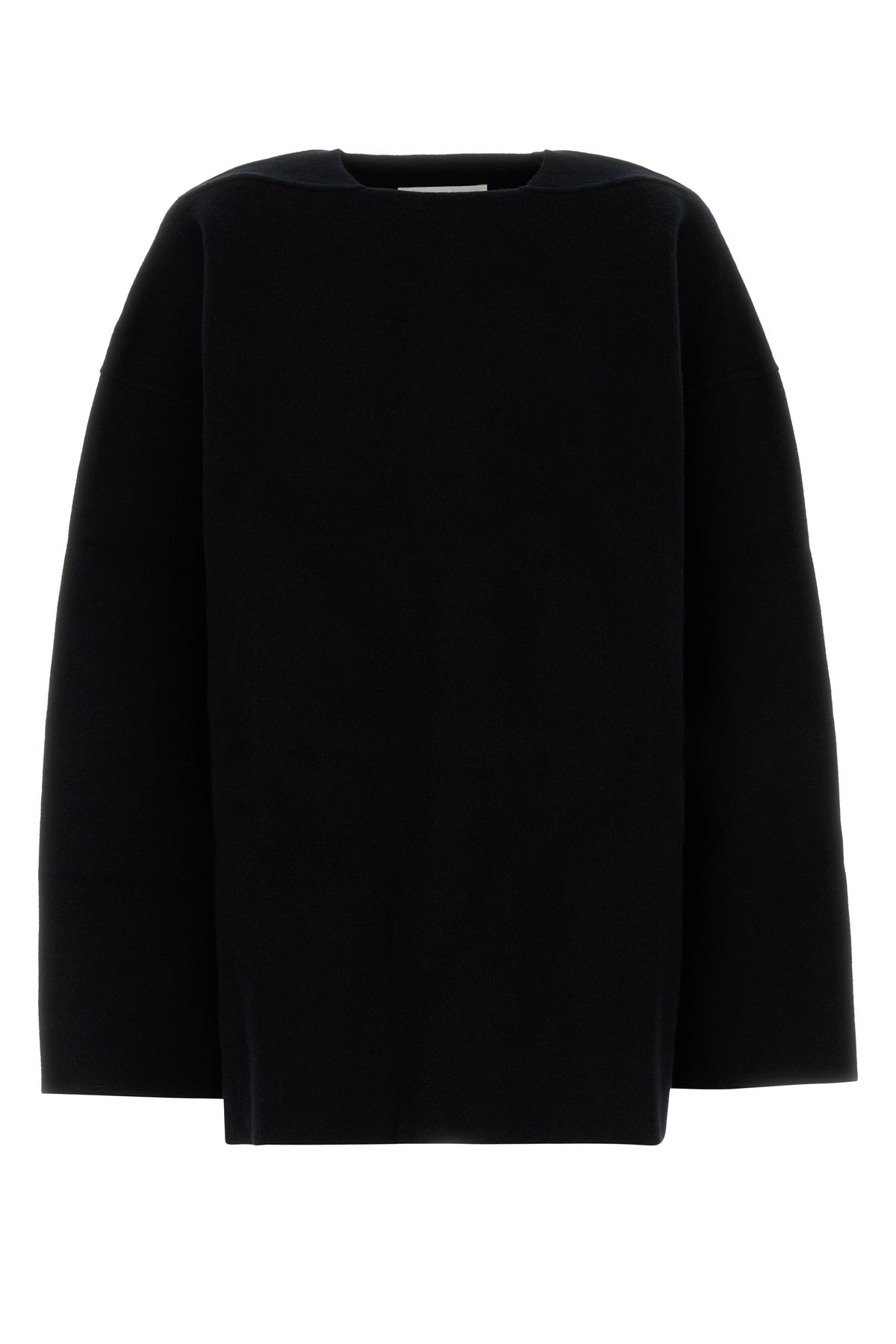 Oversize sweater realized in virgin wool blend. - Peculiar neckline DETAILS Black wool blend oversize sweater Exterior: 68% Virgin wool 17% Cashmere 15% Nylon Made in italy Sample size: XS