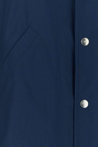 Jacket realized in pure cotton taffeta characterized by contrasting printed logo at the back. - Collar - Buttons closure - Two slit pockets at the front - Adjustable cuffs by buttons - Unlined DETAILS Blue taffeta jacket Exterior: 100% Cotton Made in italy Sample size: XS