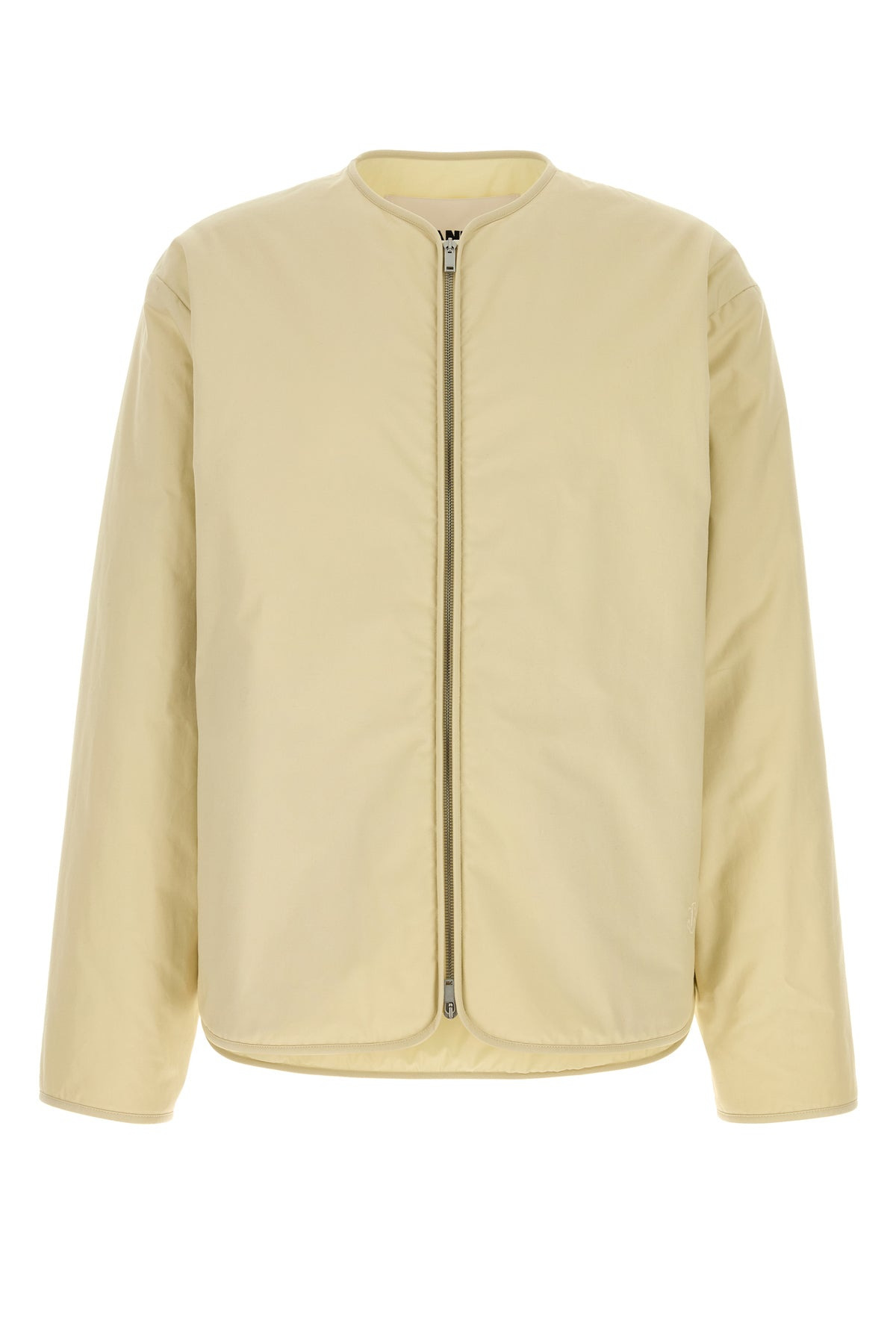 Padded jacket realized in pure cotton characterized by tonal JS embroidery at the front. - Crew-neck - Concealed zip closure - Seam pockets - Slightly longer back DETAILS Cream cotton padded jacket Exterior: 100% Cotton Lining: 100% Cotton Padding: 100% Polyester Made in italy Sample size: M