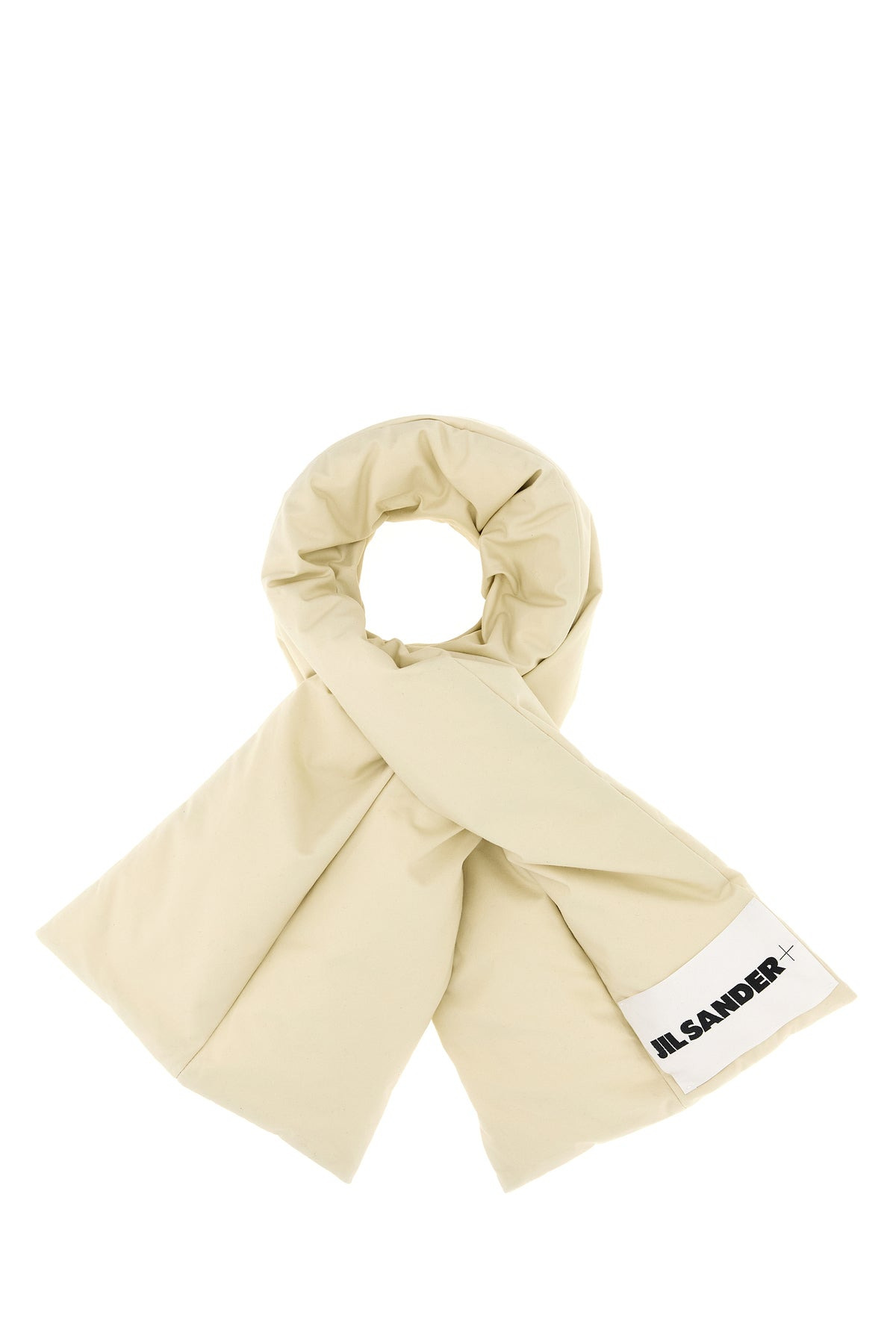 Scarf realized in pure cotton enriched by logoed label on the hemline. - Padded DETAILS Cream cotton scarf Exterior: 100% Cotton Padding: 100% Fabric Made in italy Width: 110 cm Height: 23 cm