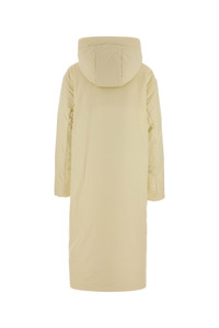 Down jacket realized in polyester characterized by hood. - Zip closure - Two zip pockets at the front - Lined interior with two patch pockets DETAILS Cream polyester down jacket Exterior: 100% Polyester Lining: 100% Polyester Padding: 85% Down 15% Feather Made in italy Sample size: XS